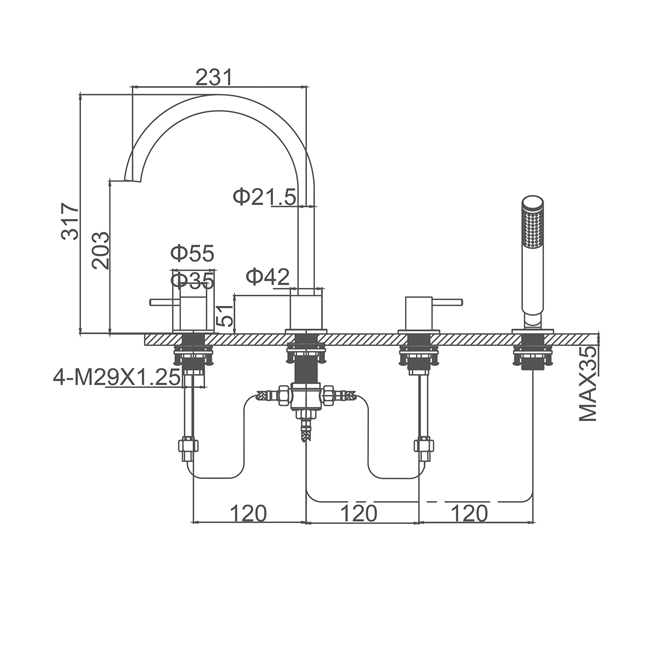 4홀데크형 욕조수전 ITEM NO: 42 3302