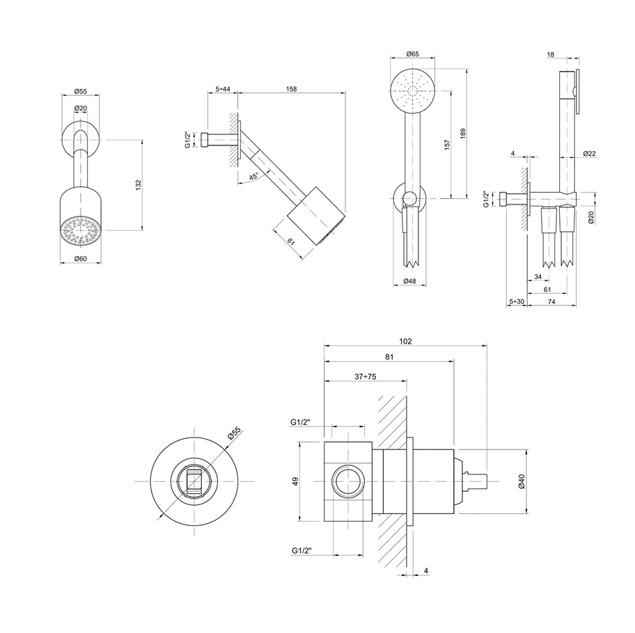 매립형샤워수전 ITEM NO: ZEX344+2*DOX542ZY+2*DOXMAN40Y+DOXKDOG
