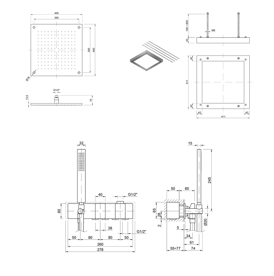 ♦ 천정형 샤워헤드 (400x400mm) 설치부속 포함