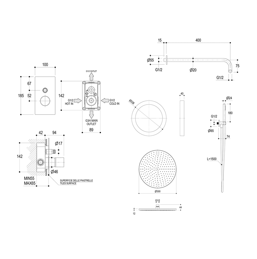 ♦ 핸들 및 Over shower head 커버 인조석 (Concrete) 적용