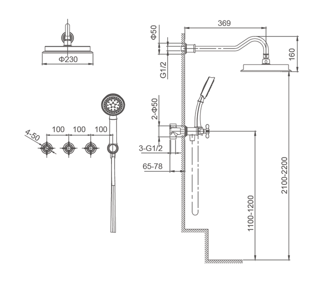 ♦ 천정형 Over Shower Head로 선택가능 (단가 동일함)