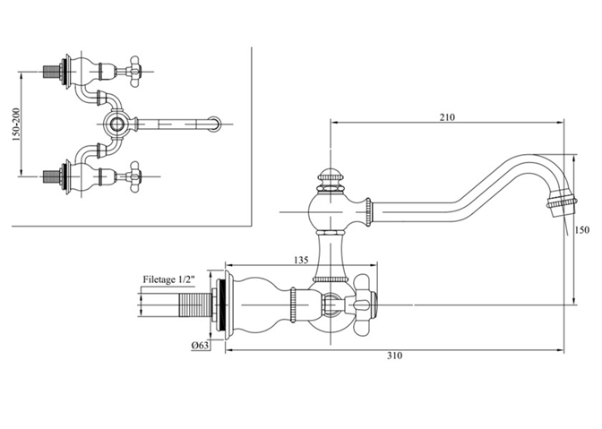 벽부형 엔틱주방수전 ITEM NO: Royale 3023.70