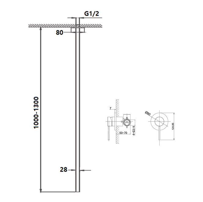 ♦ ON / OFF 핸들 벽 매립형 또는 카운터 설치형 가능