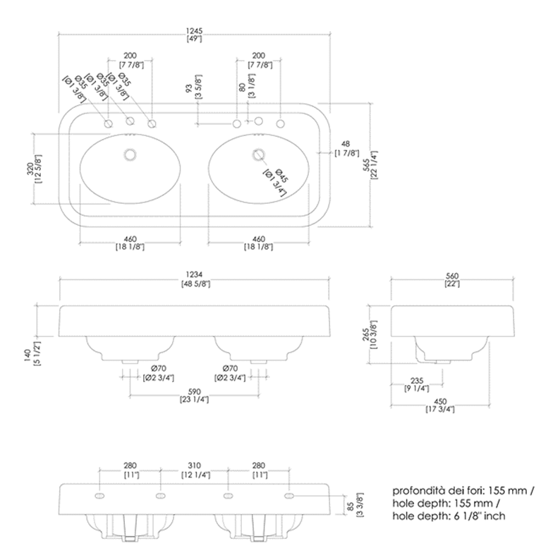 ♦ 1245x565x875mm