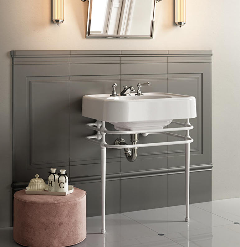 ♦ 백색 세면기 + 금속 콘솔