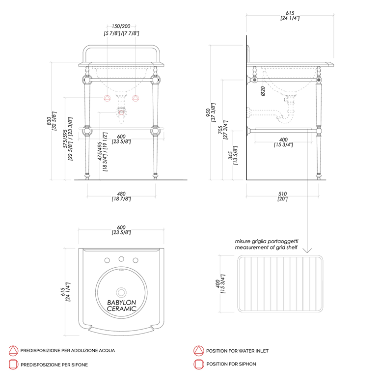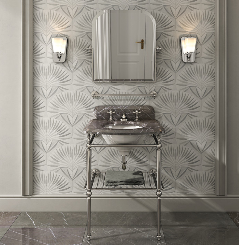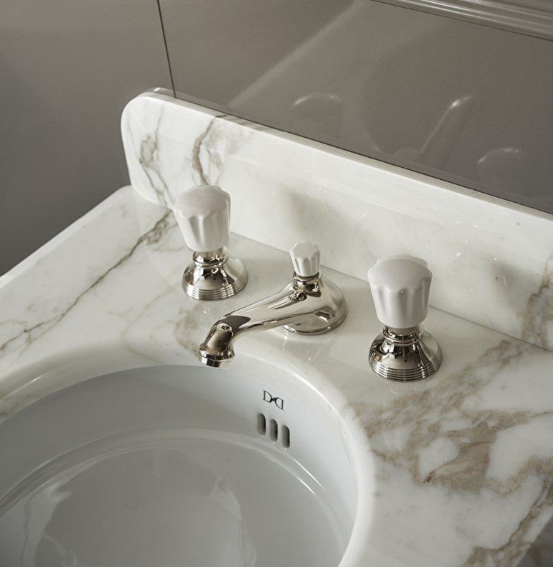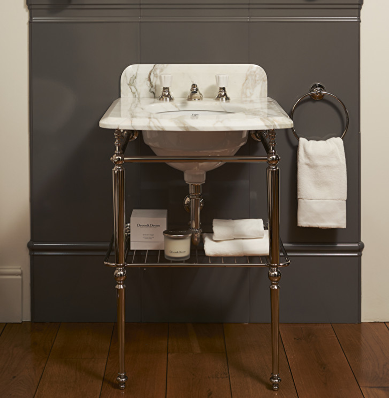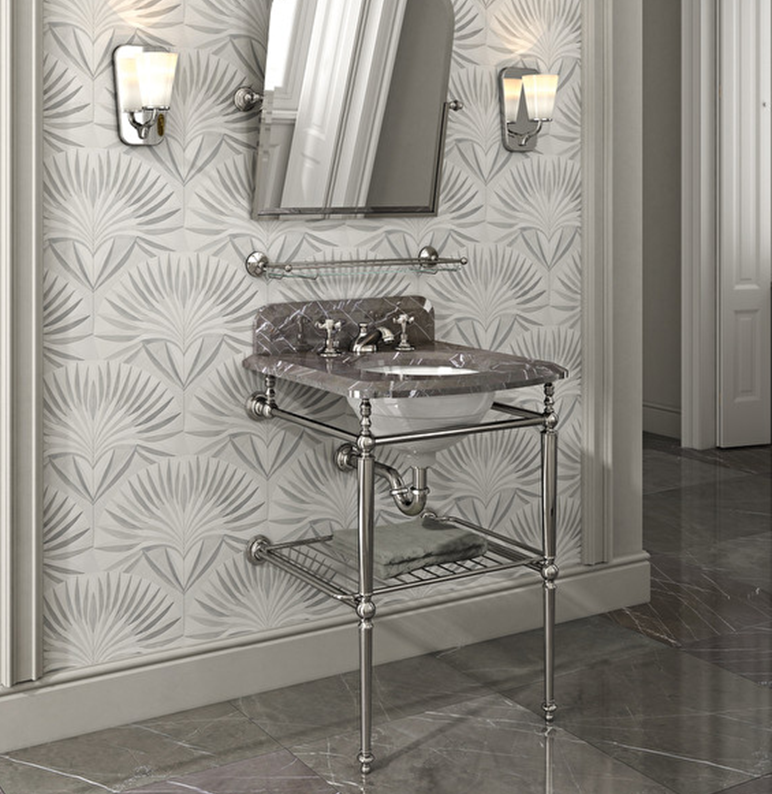 ♦ 백색 세면기 + 대리석상판 + 금속 콘솔