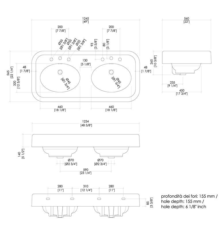♦ 1245x565x875mm