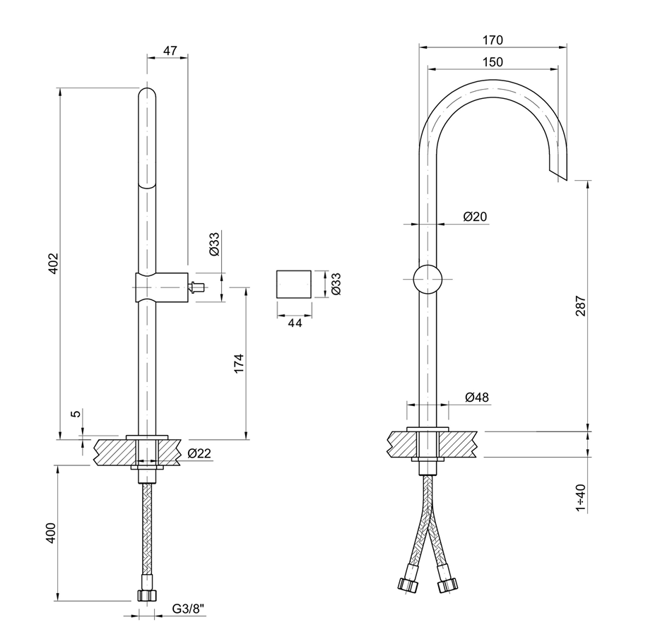 ♦ PVD Black onyx + 압축 천연 코르크 (Cork)핸들