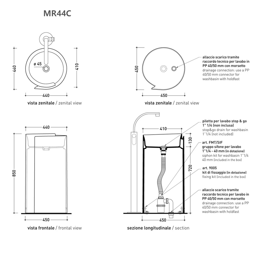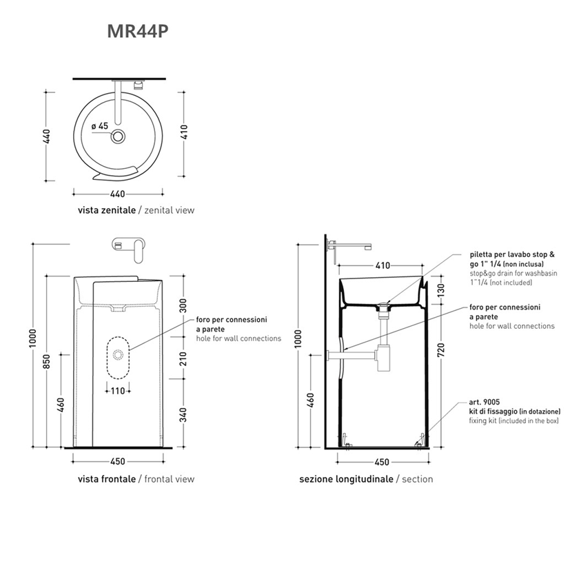 MR44P – 설비 벽 배수용, 세면기 뒷쪽 타공 있음