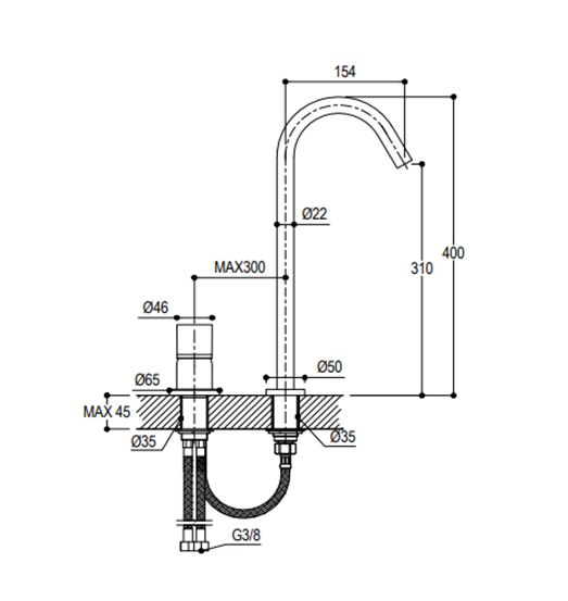 ♦ Brushed Stainless Steel+ 핸들 인조석 (Concrete)