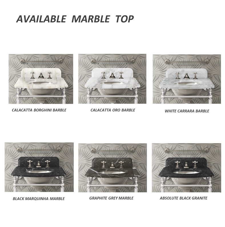 ♦ 백색 세면기 + 대리석상판 + 금속 콘솔